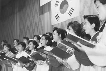 式典終了後、白頭学院有志のオモニたちの合唱・柳会による韓国舞踊が披露され好評を博した。