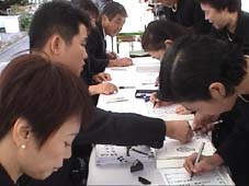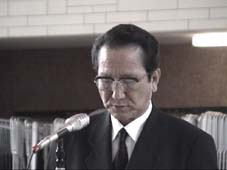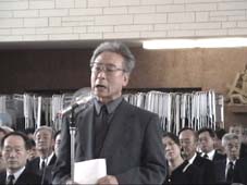 建国卒業有志による追悼歌合唱。故人略歴を述べる鄭慶達先輩。