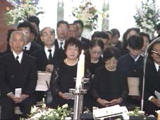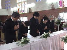 羅曽男牧師の式辞で進められた。遺家族たち。