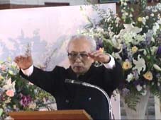 弔辞を述べる夫中鉉先輩と詩人の金時鐘先生。