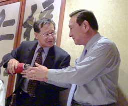 | 金教育官が帰国にあたり、その間ご苦労さんと花束を進呈。 | ||||||||