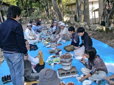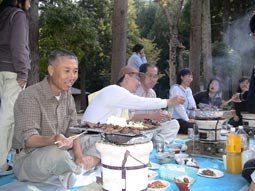 | 温泉から上がって、林間学舎に戻ると、もう焼肉が用意されていた。 | ![]() |