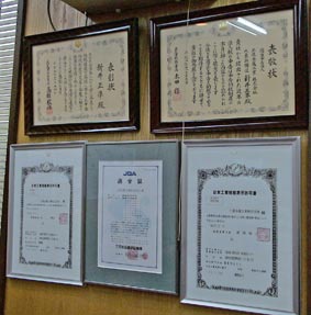 | 表彰状や資格、認定書などが多く飾れている。 | ||||||||||||||