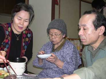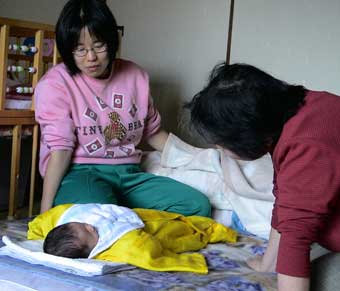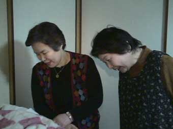 | 初孫を眺めながらにこにこする、二人のハルモニ 千香子さんの母とユンチョリの母 |
