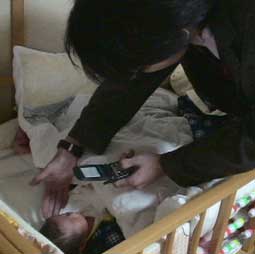 | 新米パパ、我が子をだっこして、上機嫌。 | ||||||||