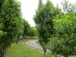 | 桃園の桃の木には桃が木にぶら下がっている。 | |||||||||||