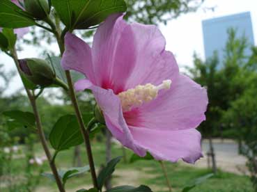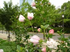 昨年大阪韓国JCが植えたムグンファの花が咲き始めている。