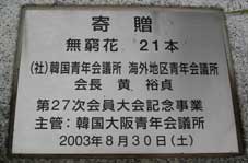 | このムグンファの木は韓国大阪青年会議所が植樹したものだ。 | |||||||||||