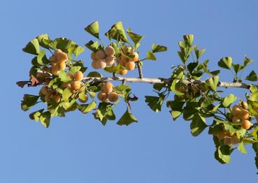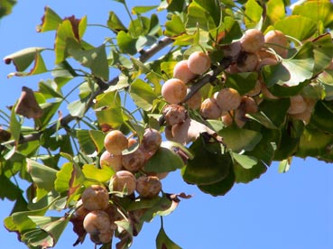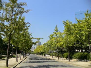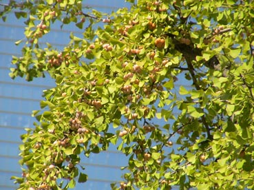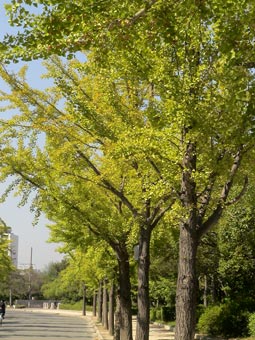 | 大阪城の公園のイチョウ並木が黄色みがかかってきた。銀杏の実はもう稔っている。 | ||||||||||||
