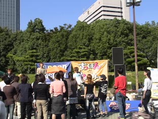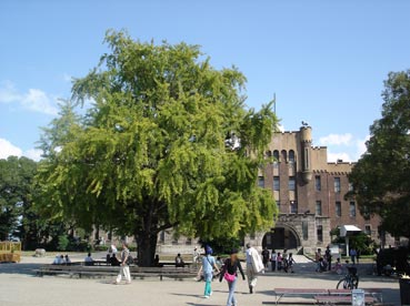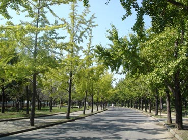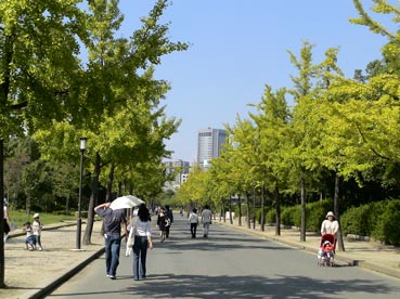 | 大阪城公園の外側にあるイチョウ並木の道。 | ![]() |