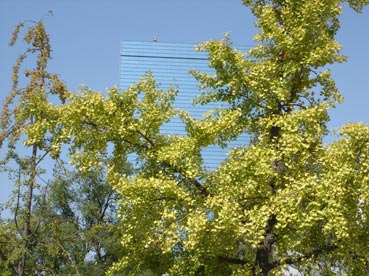 しかし、すこし暑い感じだ。イチョウの葉もだいぶ黄色みかかっている。