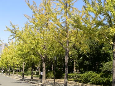 | 大阪城公園のイチョウ並木、だいぶ秋の色だ。 | ||||||||||||||||||||||||