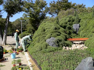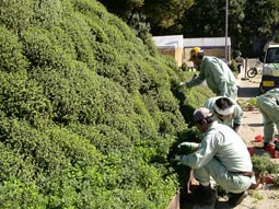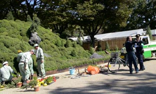 | 公園事務所の職員たちが、菊の木を埋め込んでいる。 | ||||||||||