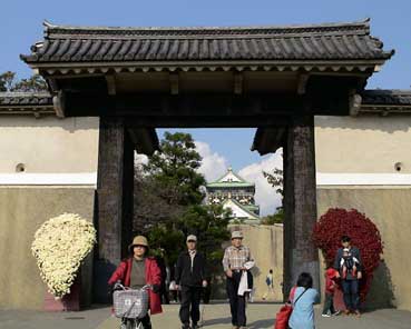 | 大阪城の入り口にも、例年の菊の花が飾られた。 | ||||||||||||||||||||||||
