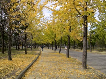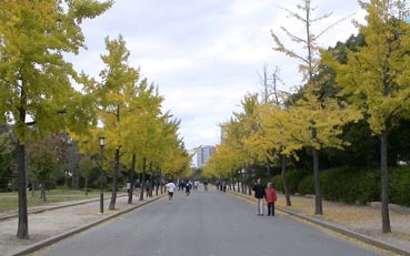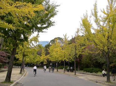 | 大阪城公園のイチョウ並木は秋の色だ。 | ||||||||||