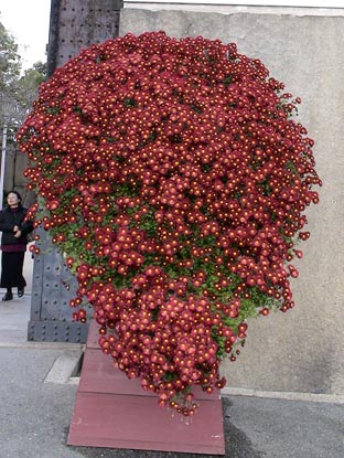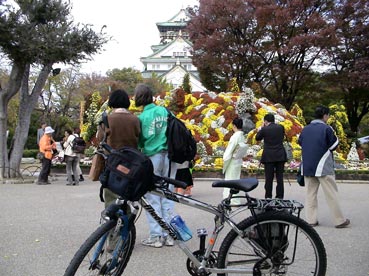 | 大阪城天守閣の入り口の菊は黄色と赤だ。 | |||||||||||||||