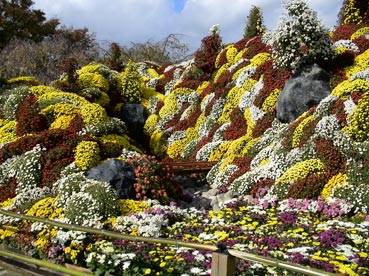 | 私もこのきれいな菊の花壇の前で写真を撮った。 | この人にシャッターを押してもらった。 | |||||||||
