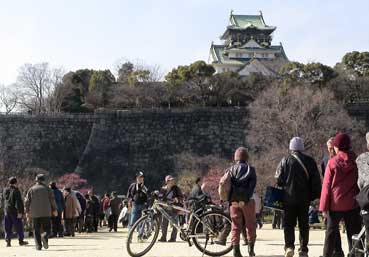 | 大阪城の周りに人がたくさん来ている。 | ![]() |