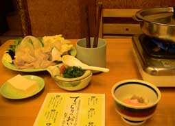 | づぼらやのてっちり屋に入った。 1人でてっちりを食べるのは味気ないね。 |