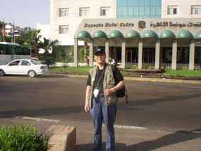 | 4/6 上六の空港バス乗り場まで、ユンス君に車で乗せてもらった。 空港バスで関空へ。10時35分集合のところ10分ほど早く着いた。よしよし。受付カウンターではこのたび添乗してくれる、中村さんが忙しく受付をしていた。 12:35発のトルコ航空が20分早く出発する事になった。早めに空港に着いたものの、お茶を飲む暇もない。 トルコの飛行機に乗った。便名はTK-049日本航空と共同運行となっていて、日本人スチュワーデスも乗っていた。トルコ航空のスチュワーデスは目がくっきりでチャーミングだ。機内食は悪くない、出たものを残らず全部食べた。 トルコのイスタンブール空港に着いたのが現地時間で20:00。日本時間では7時間早い7日の午前1時だ。と言うことは13時間飛行機に乗っていたことになる。 それから、エジプトのカイロ行きに乗り換えだ。これが22:20分発なので少し時間がある。銀行でエジプトのポンドに両替をすることにした。そうした方がいいといわれ、一行のほとんどが両替をした。とりあえず50米ドルをトルコの金に換えた。 またトルコ航空に乗ってカイロに着いた。現地時間午前1時頃だ。カイロ空港に着いたときもエジプトのお金に50米ドルを変えた。カイロ空港には現地のガイドさんが待っていた。名前はサブリさんという。流ちょうな日本語を話していた。 ホテルはSONESTA CAIRO というところ。入口には銃を持った兵士のような人たちが厳重に警戒をしていた。ホテルは悪くない。部屋も広々として、いいホテルだ。 シャワーをしたりして眠ったのは午前3時頃だ。 4/7