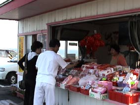 | 辺り一面いちご畑が並ぶところに出た。 熟したイチゴを販売している。さっそく買って食べた。ジューシー、新鮮でおいしい! |