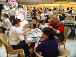 | 朝食はこの広いラウンジでバイキングだ。 | |||||||||
