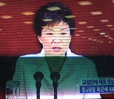 ちょうど、ハンナラ党の党首朴クネさんの発表の時であった。