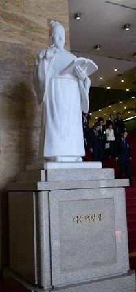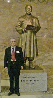 | 初代大統領、李承晩の銅像の前で。 |