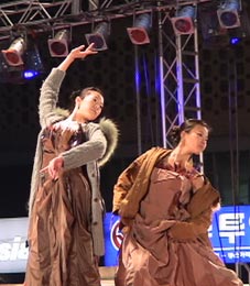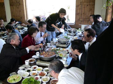 食後には歌もでたり、おどりを踊る人も。 |