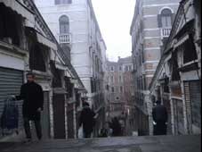 | 12月6日(土曜)<第7日目> 昨日の夕食はサンマルコ広場の近くであるレストランで行った。部屋に戻って疲れたのですぐ寝た。 朝5時頃起きた。 今日は自由行動だ。 出雲さんも起きていた。今日は朝の散歩はせず、二人でビールを飲みながら話をした。 7時頃、朝食を取り、外へ出た。もちろん出雲さんと一緒にだ。 市場の方へ行った。リアルト橋 Ponte di Rialtoを超えてしばらく行くと市場らしきものが見えた。野菜市場や魚市場など、日本と変わらなく、活気があった。船着き場のそばで、船から野菜などを運んでいた。 こちらの運搬には船を利用している。これがトラックのようなものだ。 9時過ぎごろ、一行がこの近くのスーパーに買い物に来るということで、一行と合流して、スーパーへ入った。食品売り場だ。チーズやチョコレートなどをおみやげに買った。皆さんも、いろいろと買っていた。 |