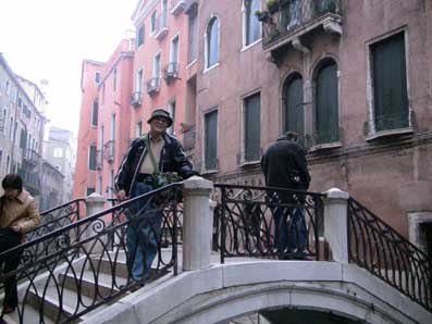 | 12月7日(日曜)<第8日目> 5時頃起きた。 昨夜荷造りをしたので、準備は簡単にできた。 スーツケースを部屋の外へ出して、出雲さんと外へ出た。 最後のベニスの町を散歩するためだ。 寒い。今日は、この旅行で一番寒いようだ。 日本にいるとき、ミラノやベニスは寒いと聞いてきたが、ミラノでは寒くなかった。その代わりにずっと雨であった。ベニスでもそんなに寒くなく、しかも天気もまあまだ。しかし、今日は寒い。 市場の方へ行ったが、今日は日曜日のせいか、店は開いていなかった。 ホテルに戻ってフロントにあるパソコンでインターネットをしているとき、佐藤さんや河原さんたち4人がこれからコーヒーを飲みに行く、いいカフェー店があるからという。出雲さんと私はそれに加わることにした。また市場の方へ行った。日曜日のせいか、周りの店はしまっているが、露地に入ったところのそのカフェ屋は開いていた。 店は外から見るよりきれいし、明るかった。早いせいか、マスタ一人でパンを焼いていた。 佐藤さんと河原さんは昨日このカフェ店に来て、すてきな女子店員と話をしたりして、楽しかったので、今日はその店員に渡すためのイタリア語でラブレターを書いて持ってきた。 しかし残念ながら、その店員は日曜日なので休みだという。 がっかりだ。 熱々の焼きたてクロワッサンとコーヒーはとてもおいしいかった。 |