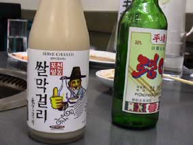 | 金澤さんが焼酎を飲みたいと言うので、 「平壌」を飲むことにした。 |