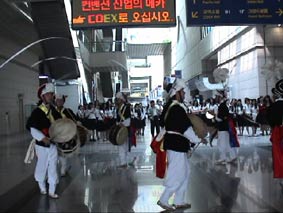 | チョンロへ、有名なビンデトクの家へと行った。 しかし、ここのはたいしたことがなかった。 インサドンをみてまわった。 貞洞劇場へいった。 ここでは、サムルノリや韓国の古典音楽や踊りを見せてくれた。 |