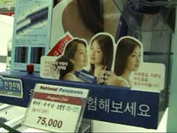 「高句麗」という、展示物をみた。ピョンヤンから持ってきた、宝物やお墓の壁画などを 展示していた。 12時ごろ、この「高句麗」展示場の前で4人は合流し、昼食を取った。 その後、韓国最大の電気街、ヨンサンへ。 ナショナルの製品がたくさんあったが、パナソニックコリアを通しての正規のルートで入っているものもあれば、並行輸入で入っているものや、いろいろだ。 そこへ、友人の張哲雄君が来た。彼は韓国で古くからの友人だ。 |
