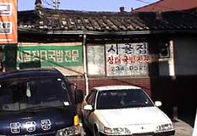 | 留学クラブへ行った。昼食にと、ジョンロの「シゴルチブ」へ行った。 昔の田舎風の家がそのまま、食堂になっている。その雰囲気は昔を思い出した。 |