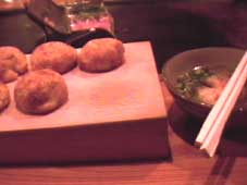 | 大阪で、たこ焼き。しかも、これは明石焼きといって、おつゆをつけて食べる。 | ||||||||||||||||||||||||||