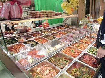 | 百済駅の近くに土・日だけ店開きする海鮮市場があった。新鮮で安い。 その二階に回転寿司屋があって、これまたネタが新鮮でおいしい。しかも値段がめちゃ安い! そこそこ食べて飲んで一人1,300円だ。 |