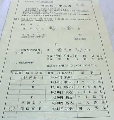 ■目の手術で病院に入院(2006/6/6)