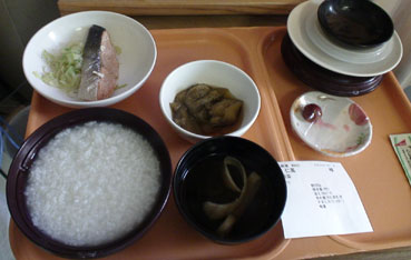 | 朝食、普通はパンだが私はお粥を希望した。 | ||||||||||