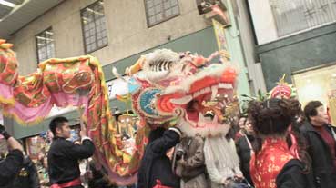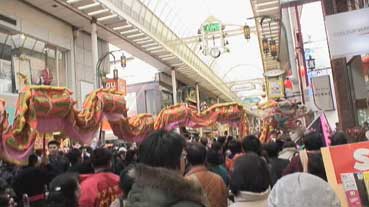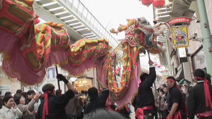 龍舞が元町商店街をパレード