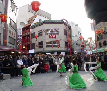 | 南京町広場では、歌や踊りなどのいろいろと、催しがくり開かれた。 | ||||