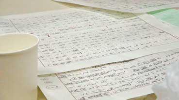 | 400字の原稿用紙に懸命に作文を書く。 | |||||||||