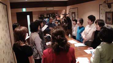 4月13日、本町のブライトンベルカフェで、ミュージカル「鬼童子<おにわらし>」の練習を行った。