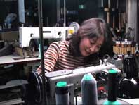 メンバーのカバン工場を訪れ、縫製技術やデザインについて意見交換。