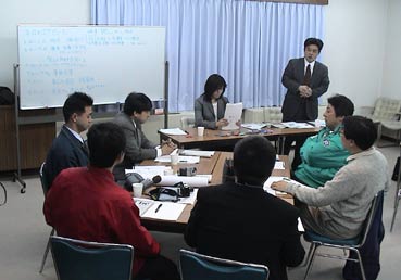 | 今月の例会はFI会員でカラーコーディネーターの加藤三幸さんを迎えての講演「売上を伸ばす色使い」でした。 例会後、釜谷さんの送別会も開きました。 参加者は事務局も含め25人。 大阪商工会議所生野支部と東成支部統合を控え、大商生野支部での最後の開催となりました。 また、より良い例会にしようと、初めてグループディスカッションを採用。 参加者を三グループに分け、講演の後グループで討議し、各グループの代表者が質問する形式です。司会は大崎さんです。 |
