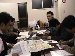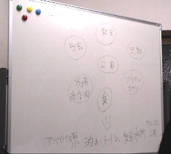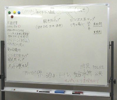 | まっぷ隊第一回作戦会議の報告を致します。 佐藤、高、林、河手、大熊、山崎、岡田の 7人がまだんに集って、7時半からスタート。 3時間遅れて重松さんが登場しました。 前日の祝イタリア語講座開講パーティーの余韻(疲れ?)と いつからか入った酒の影響で、最後は 何が決まって何が決まらなかったのかも判別不能で終わっています。 その中でまじめにやったこと決まったことを記します。 1、河手さんからこれまでに届いたみなさんからのメールの紹介。 内容はそれぞれメールで既にご承知と思いますので記しませんが、 それぞれが貴重な意見で、この日の会議のたたき台になりました。 メールを送っていただいたみなさん、ありがとうございました。 2、コンセプトはイタリア人が生野に来た時に便利なマップ。 うまいキャッチコピーがあればみなさんよろしくおねがいします。 3、観光用、ビジネス用の二つのマップを作る。 但しサバイバル系の情報(泊まる、給水、交通、公共施設、トイレ等)は 両方のマップに載せる。もちろん、インフォメーションのお手伝いが出来る FIメンバー会社も載せる。 4、観光用は大池橋のカトリック教会を中心に、 公園、市場・商店街、史跡、古い町屋、インターネットカフェ、コリアンタウン 5、ビジネス用は町工場や会社を業種別に掲載。 6、最初はウエッブ上でマップを作り、ある程度できてからスポンサーを探す。 ウエッブ上でマップを公開することで世界から検索可能。 7、暖かくなったら、実際に生野を自転車で回って調査。 8、マップの範囲は生野区に限らず周縁も含める。 9、その他のアイデア 大商さんにインフォメーションのセンターになってもらう。 ミラノ化ゾーンの設置。 生野探索何時間コース。 マップで割引。 イタリア語だけでなく韓国語、英語と第二、第三のマップ。 10、今後、マップ委と自転車委が一緒に活動する。 11、前回の例会ではマップ委員長にとりあえず私岡田がなりましたが、正式に 河手さんに決まりました。マップ委の中では一番若く、やる気も一番です。 今後ともよろしくお願いします。 というような次第です。 参加者のみなさん書きもれがあったら、付け加えてください。 (岡田 光司) |