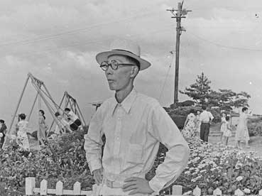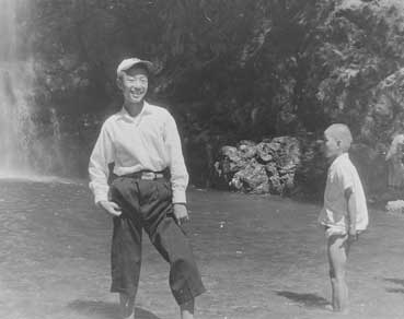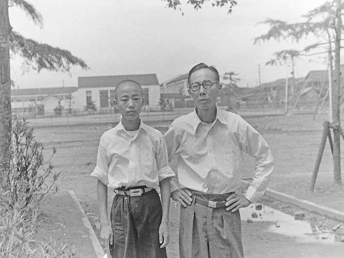1957年7月、いかるが公園(現桃谷公園)で、父と。