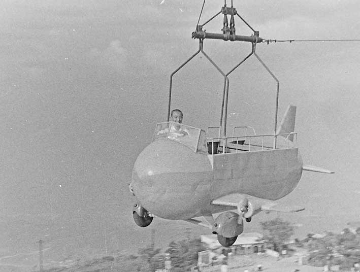 生駒山頂にある飛行機に乗る。