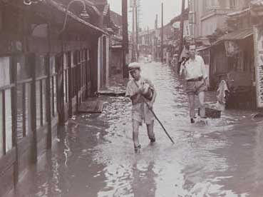 気象台などの記録を調べて、この年に大阪に大雨があったのか、調べればわかるかも。