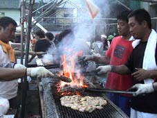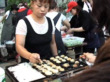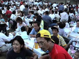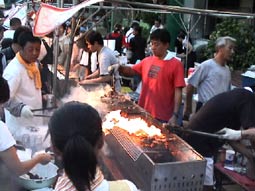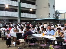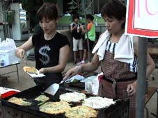 運動場にテーブルやいすがおかれ、屋台もチジミやヤキニク、たこ焼きなどあって、大にぎわいだ。